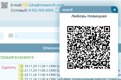 Чтобы перенести контактное лицо из CRM в телефон - достаточно навести камеру телефона на QR код